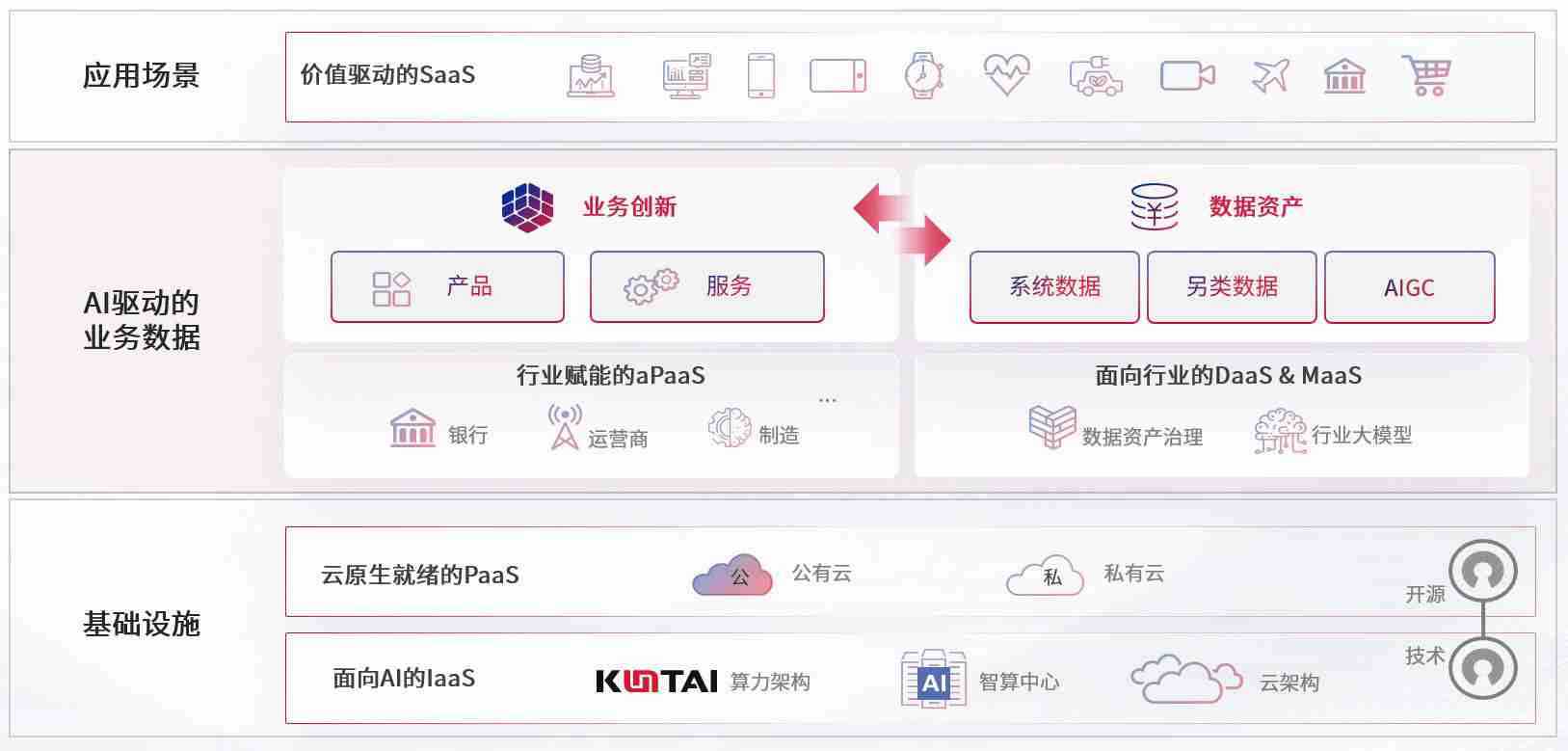数字时代,,围绕企业数字化转型的关键要素,,998钱包数码开创性的提出数云融合战略和技术体系框架,,,着力在云原生、、、数字原生、、、AI原生和信创产业上架构产品和服务能力,,为处在不同数字化转型阶段的快消零售、、、、汽车、、、、金融、、、医疗、、、政企、、、教育、、、运营商等行业客户提供泛在的敏捷IT能力和融合的数据驱动能力,,,构建跨界融合创新的数字业务场景和新业务模式,,,助力企业级客户建立面向未来的核心能力和竞争优势,,,全面推动社会的数字化、、、、智能化转型升级。。。